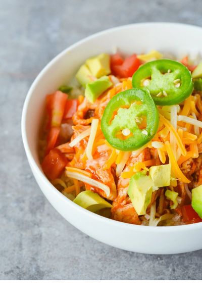 To Serve, top with avocado, cheese, jalapeno, sour cream, tomato, and any other desired toppings. Feel free to customize these to your preference. Serve alone or over cauliflower rice if desired just be sure to update your personal nutrition info as needed.